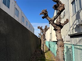 第1・第2組合会館前や団地内緑地の植木や木々がきれいに剪定され、すっきりとした装いとなりました。